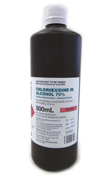 Hospital grade surface disinfectant. Chlorhexidine In Alcohol 70% - Antiseptic and Sanitising