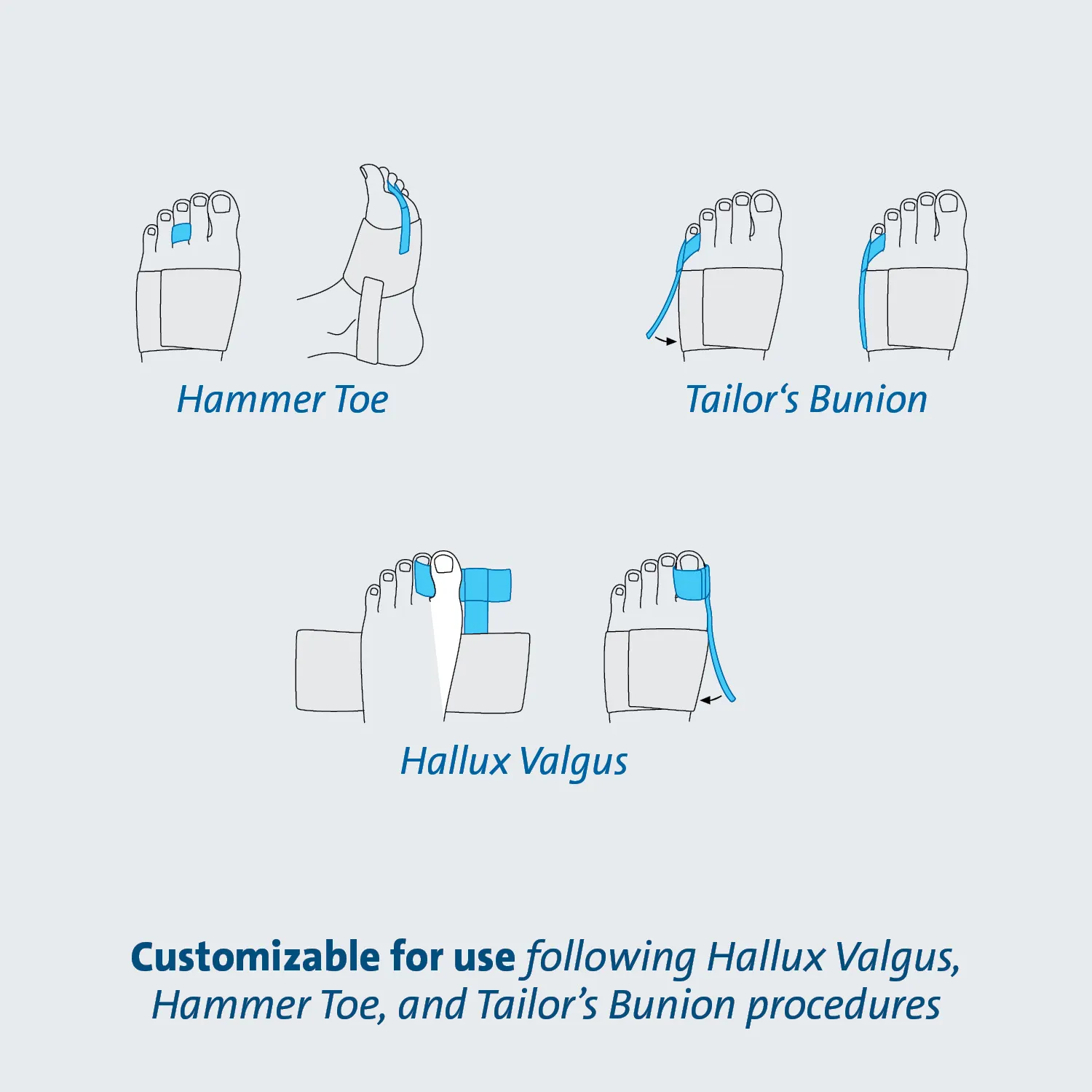 The Toe Alignment Splint is a cost-effective solution that provides superior post-operative toe alignment after Hallux Valgus, Hammer Toe and Tailor's Bunion procedures.