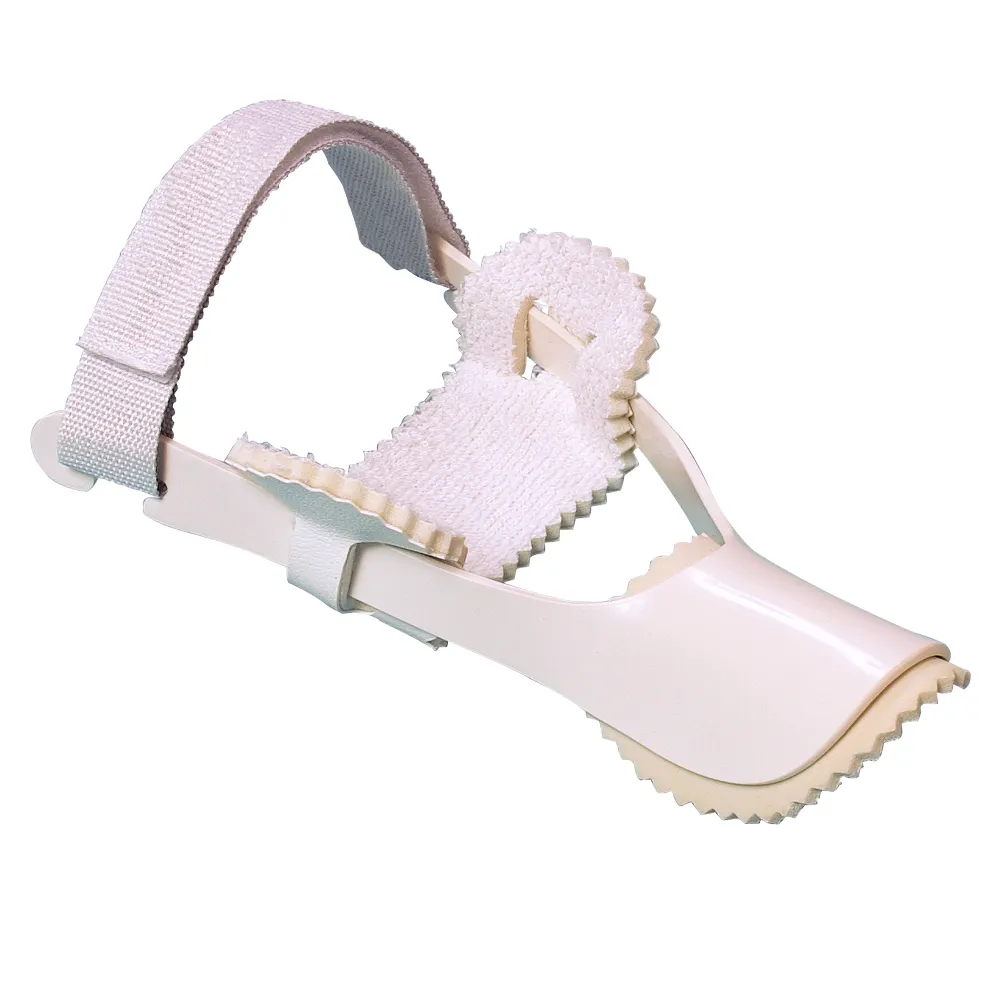 The Hallux Valgus Night Splint is a plastic sling that holds the foot in the correct position during the night and soothes pain by exerting pressure on the bunion, preventing a possible worsening of the problem. Traction must be carried out so that the correction of the deformity of the toe is visible. The corrector of the toe is acting effectively when the joint at the base of the big toe, on being pressed, experiences a slight pain.