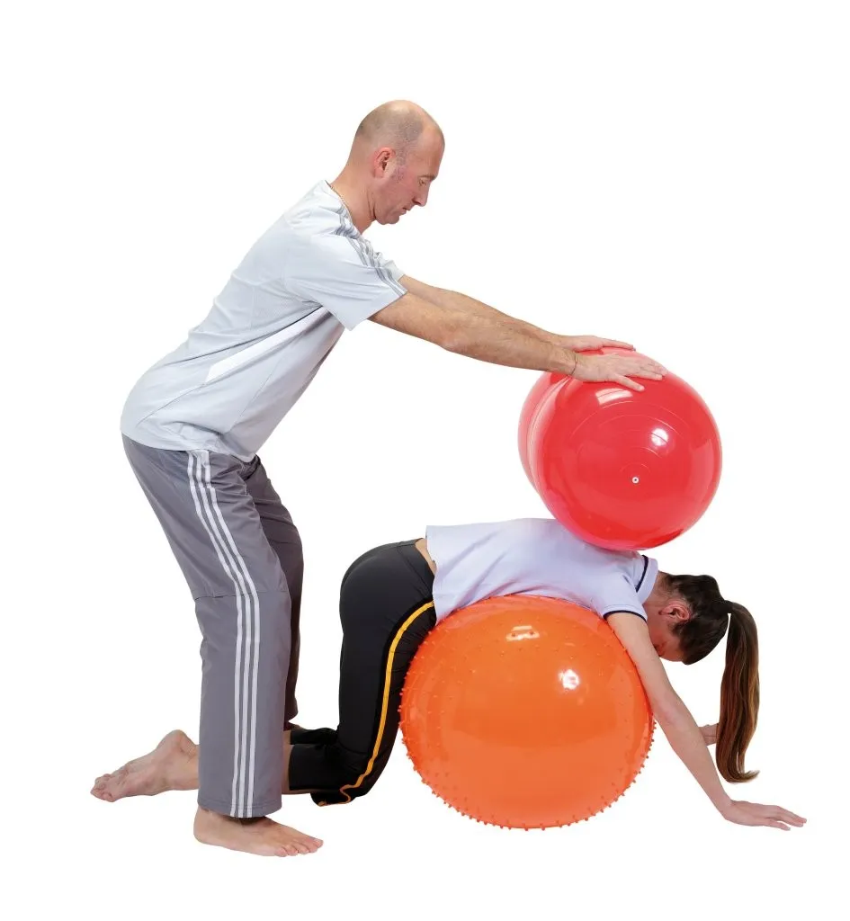 users of all ages can exercise in a safe way. The therapist can sit on the ball
