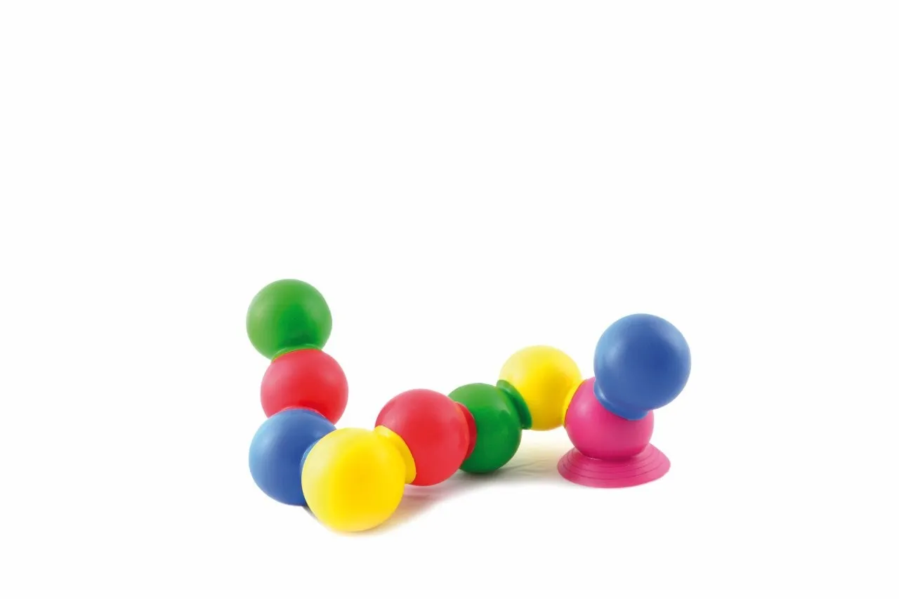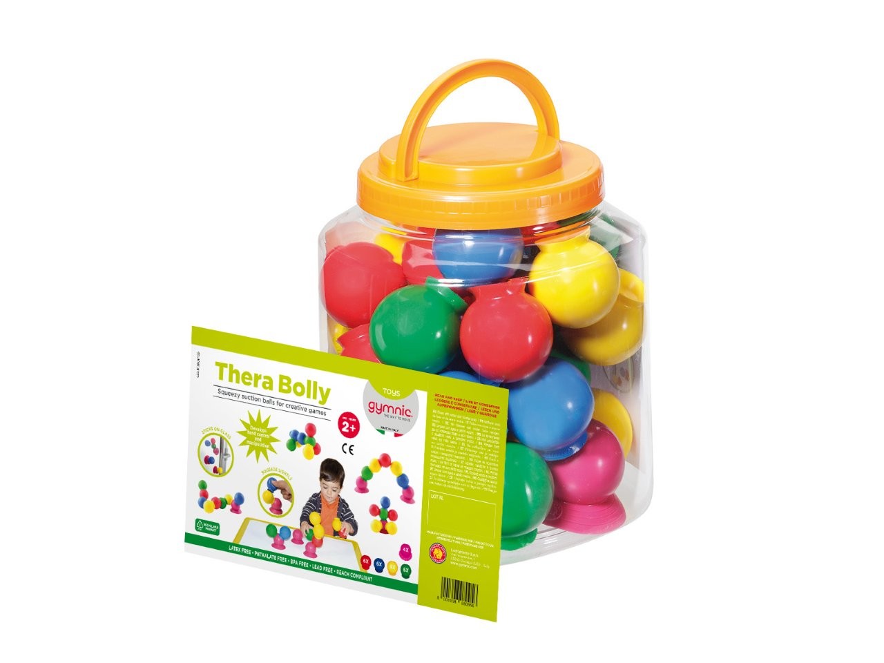 The Thera Bolly is an amusing game, which helps kids develop their fine motor skills. The small coloured balls are equipped with a sucker and can be easily stuck to each other with a gentle squeeze. In this way, your child can create many different constructions. Thanks to the assorted five colours, Thera Bolly can be included in educational and recreational activities. One set of Thera Bolly is supplied in a transparent elephant-shaped box containing 28 balls. Contact us for further information Product information